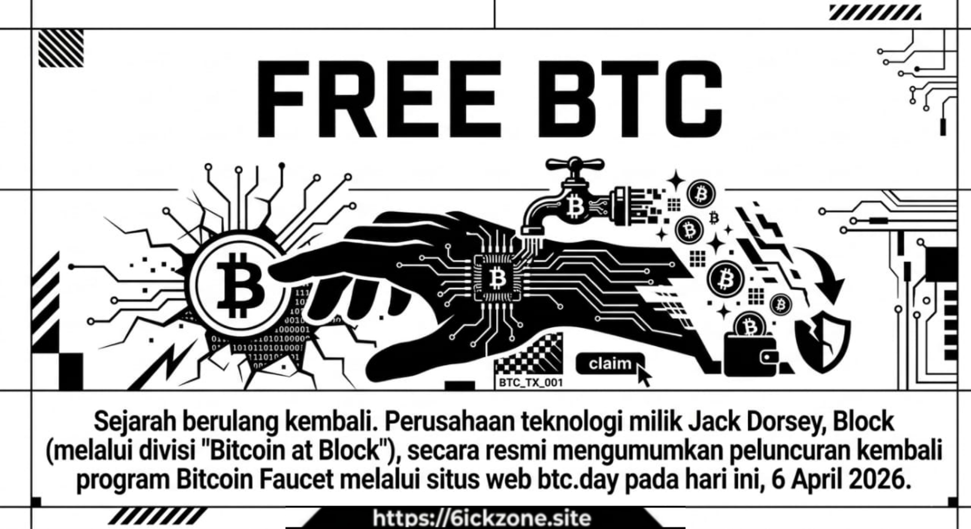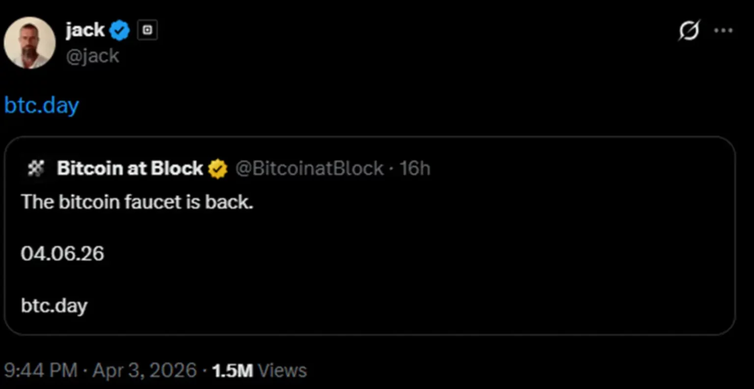 Sejarah berulang kembali. Perusahaan teknologi milik Jack Dorsey, Block (melalui divisi “Bitcoin at Block”), secara resmi mengumumkan peluncuran kembali program Bitcoin Faucet melalui situs web btc.day pada hari ini, 6 April 2026.